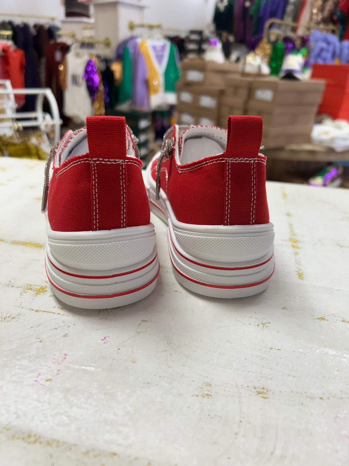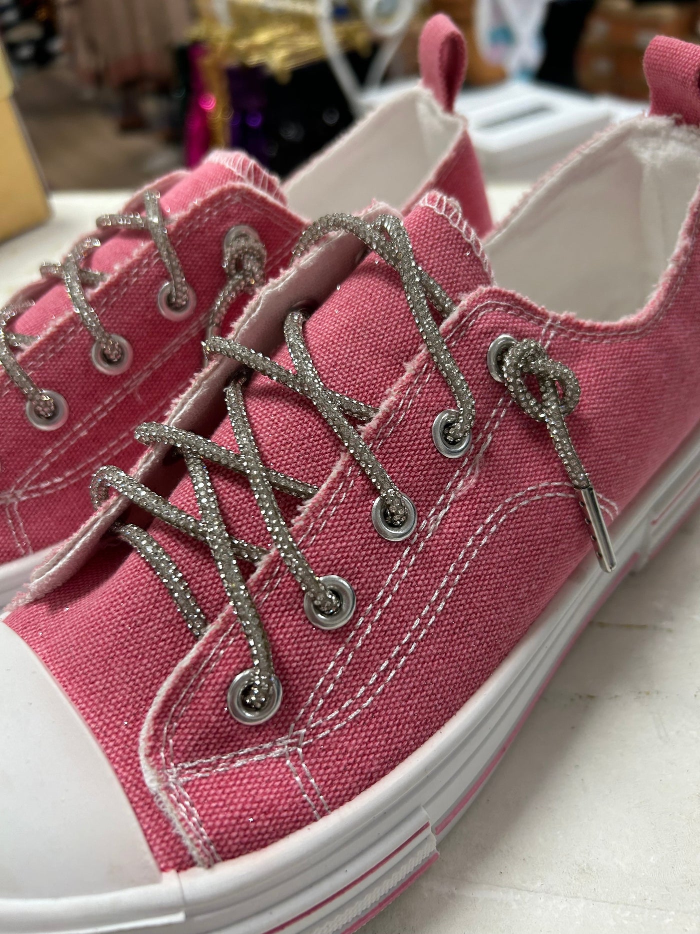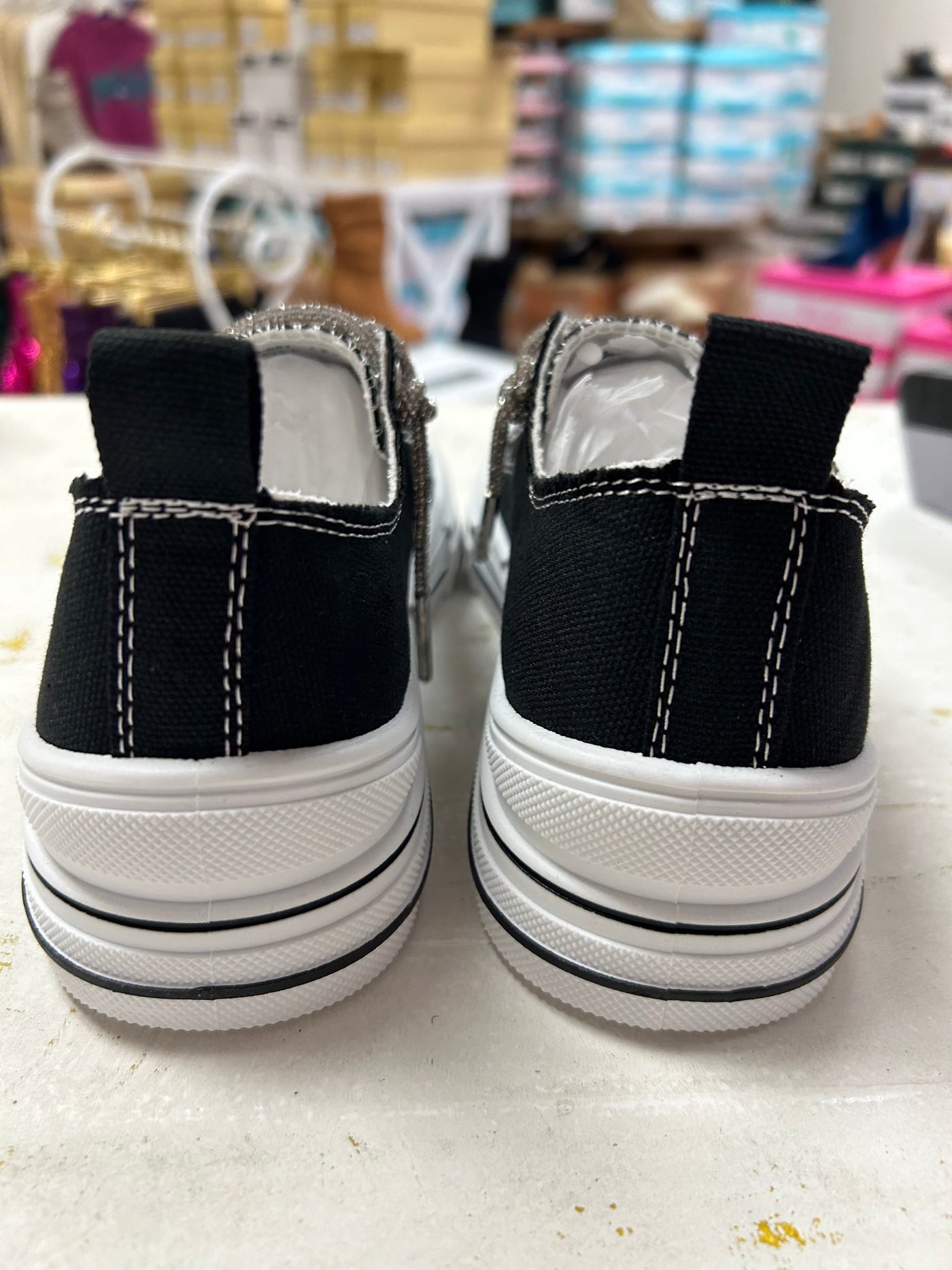 The Aman Rhinestone Lace up Tennis shoe is a standout crowd favorite with its platform sole and canvas construction. The rhinestone laces add a touch of glitz and glamour, making you stand out in the crowd. With a pop of shimmer and sparkle, this shoe is sure to impress. Expertly designed for both style and performance.