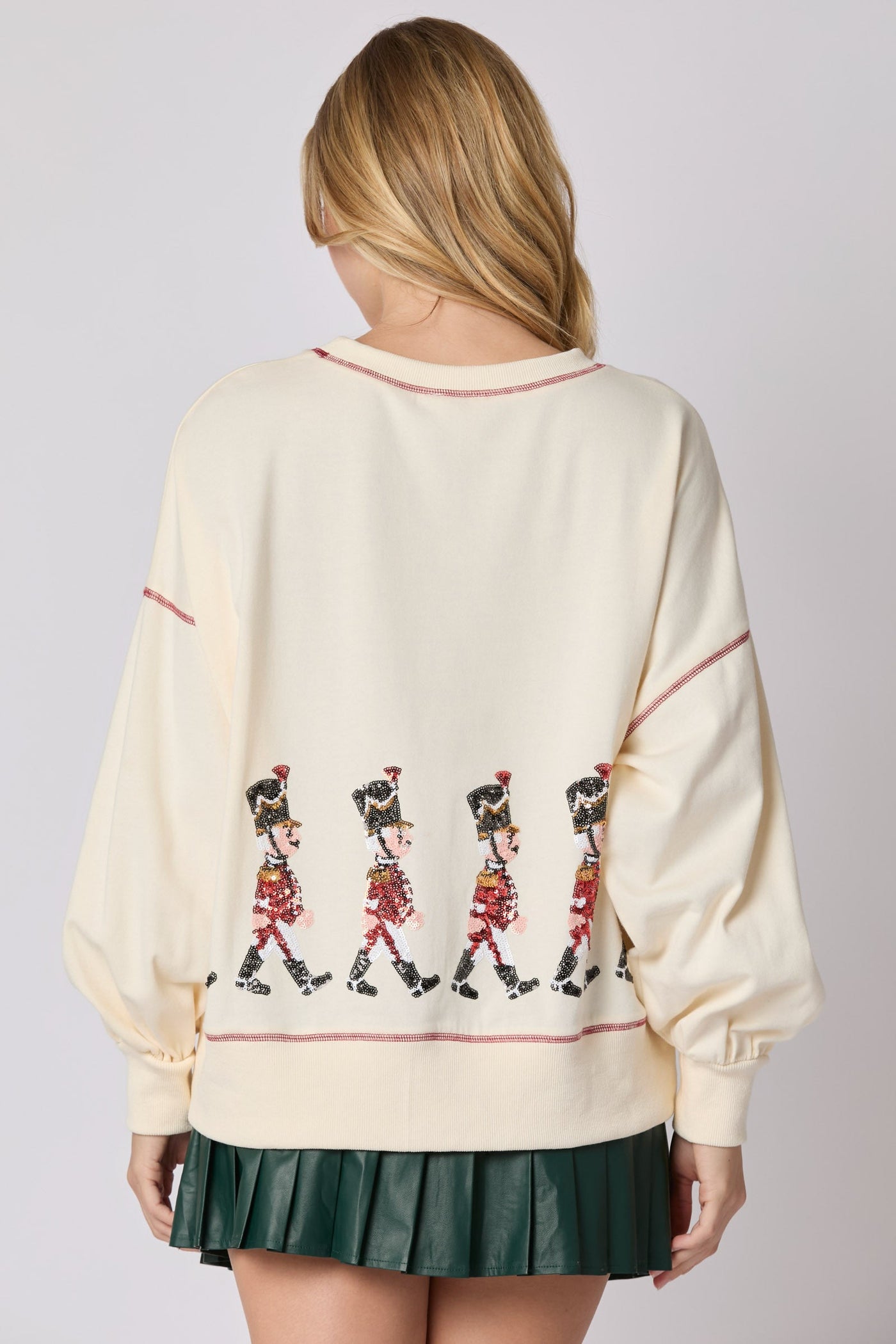 Inform when this item available Christmas Soldiers Sequin Embroidery Sweatshirt