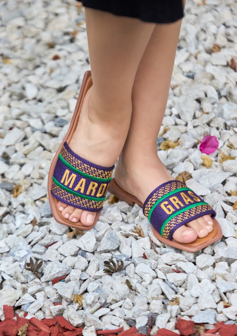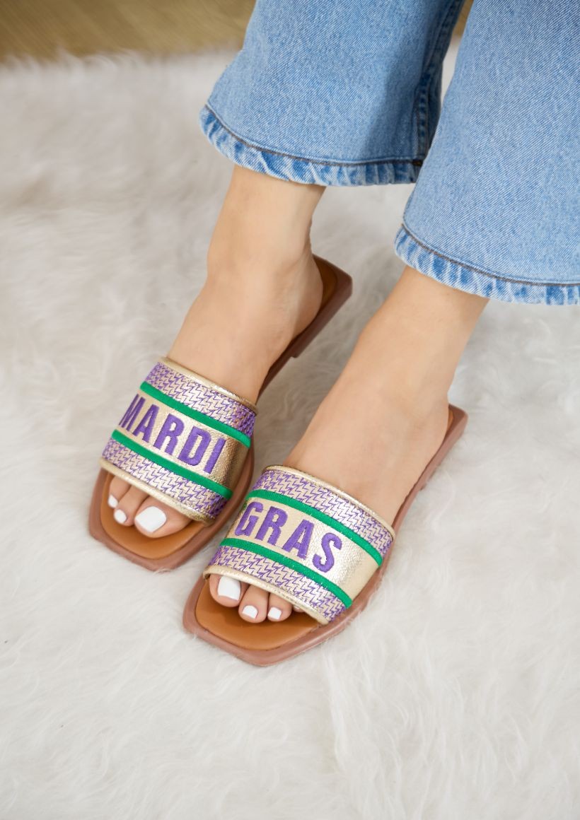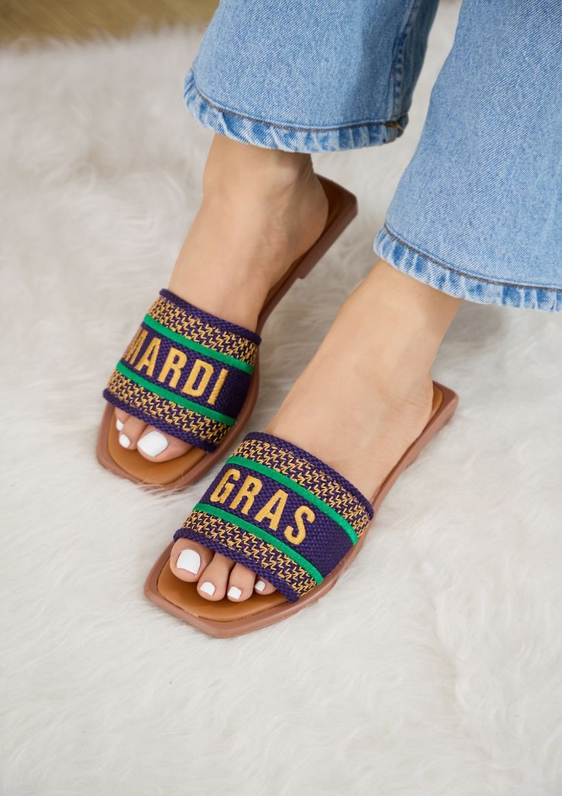 Step into style and comfort with our latest collection of Mardi Gras sandals! These lightweight, slip-on sandals are designed to give strength to your feet while keeping you trendy with their vibrant colors and chic square tip. Perfect for a weekend getaway, they're not just footwear, they're a statement piece that will elevate any outfit. Don't miss out on the chance to treat your feet to the ultimate blend of comfort and fashion!