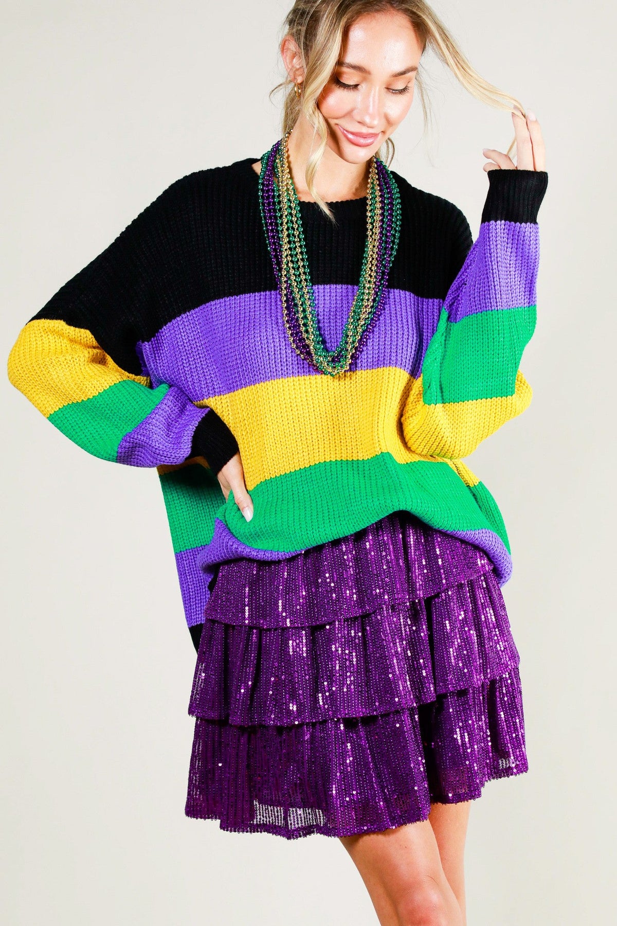 Inform when this item available CONTRAST DETAIL MARDIGRAS SWEATER TOP- BLACK