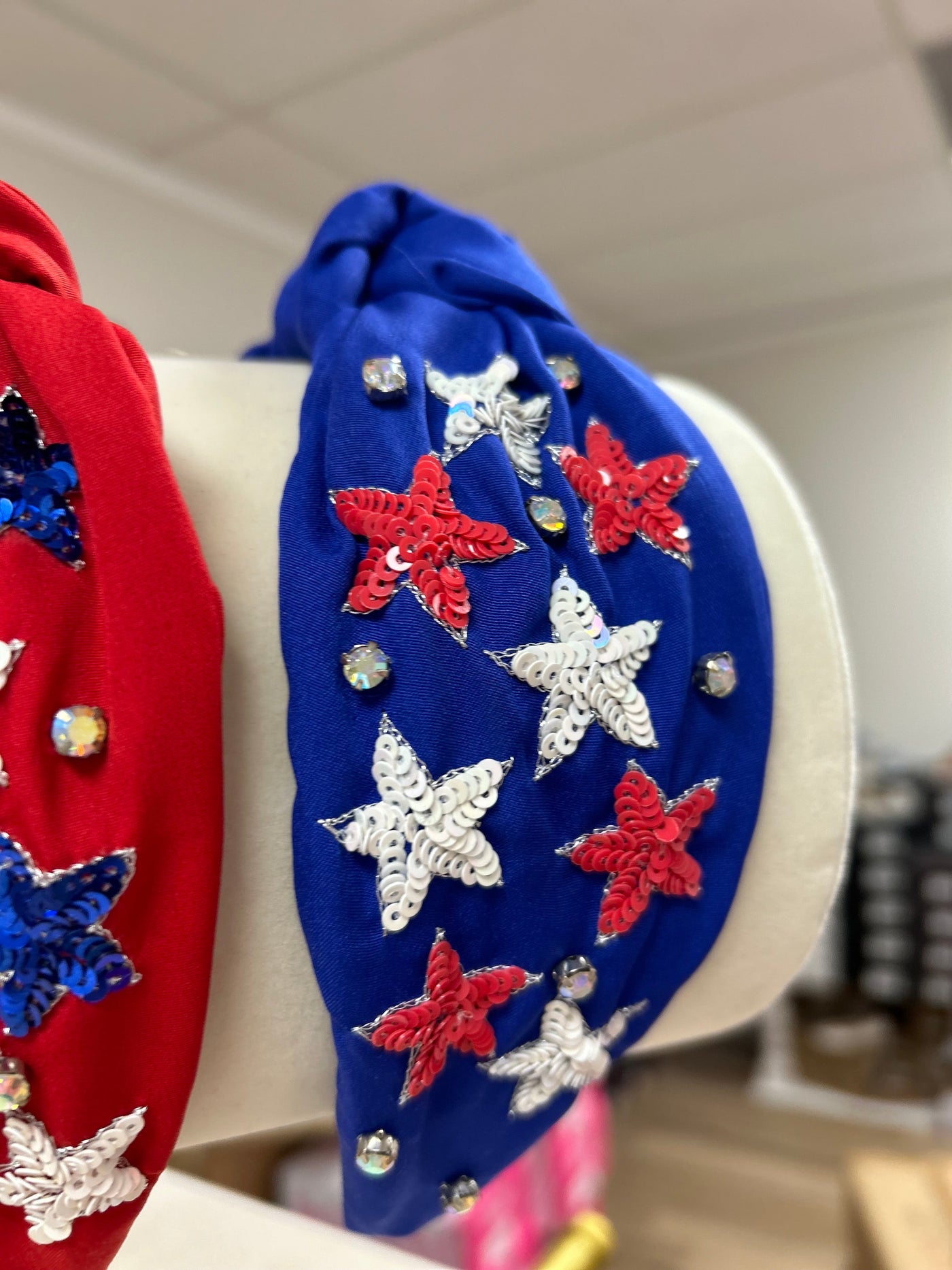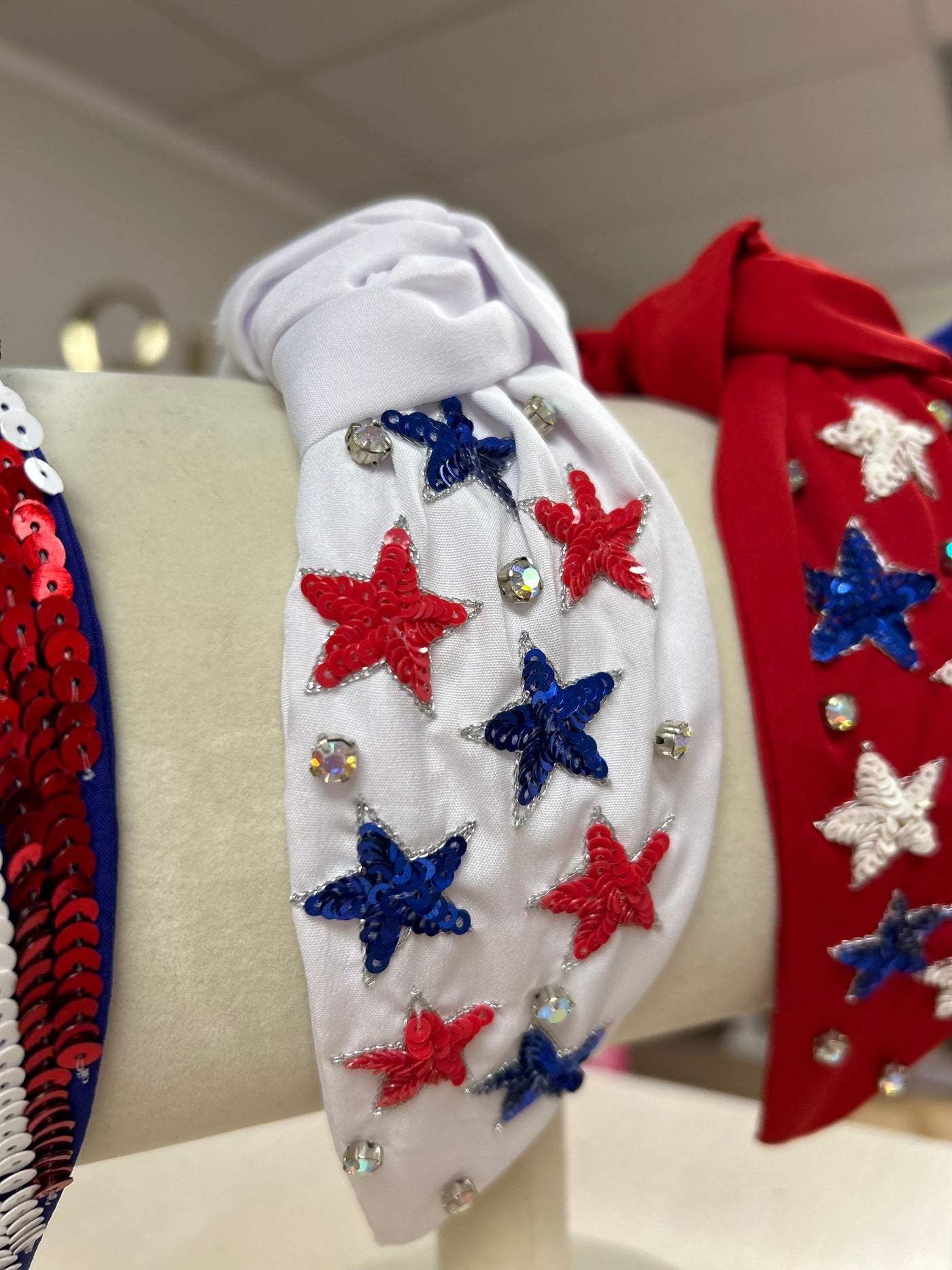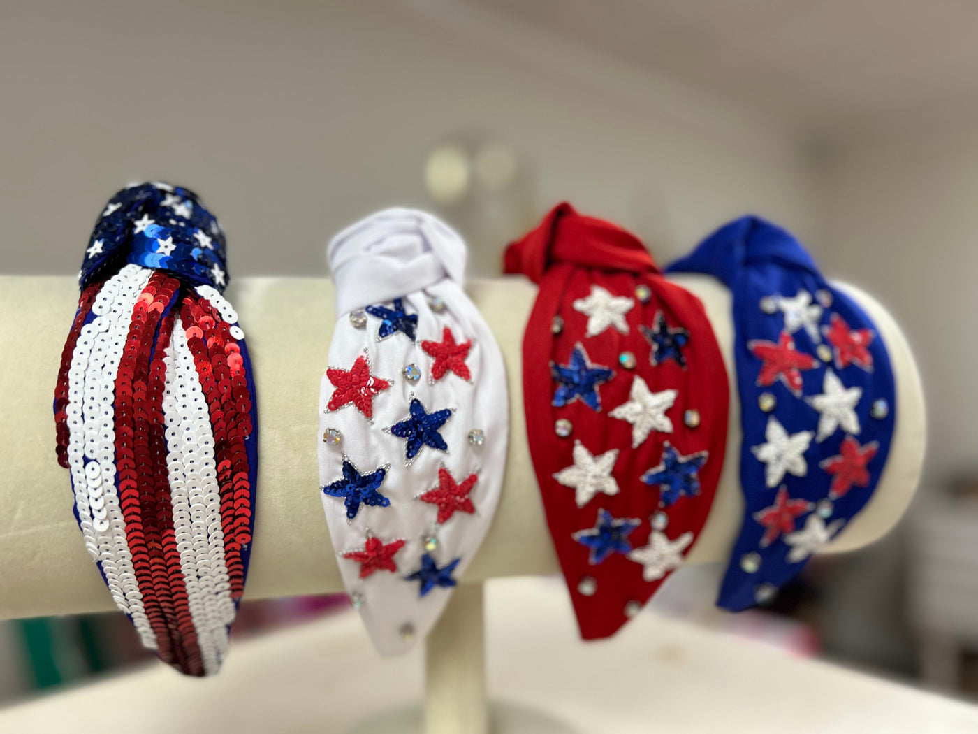 Celebrate your love for your country with All About The Fourth Headband. Made with high-quality materials, this headband features a trendy sequin star design in vibrant red, white, and blue. With its clean and classic look, it is the perfect accessory to add a patriotic touch to any outfit.