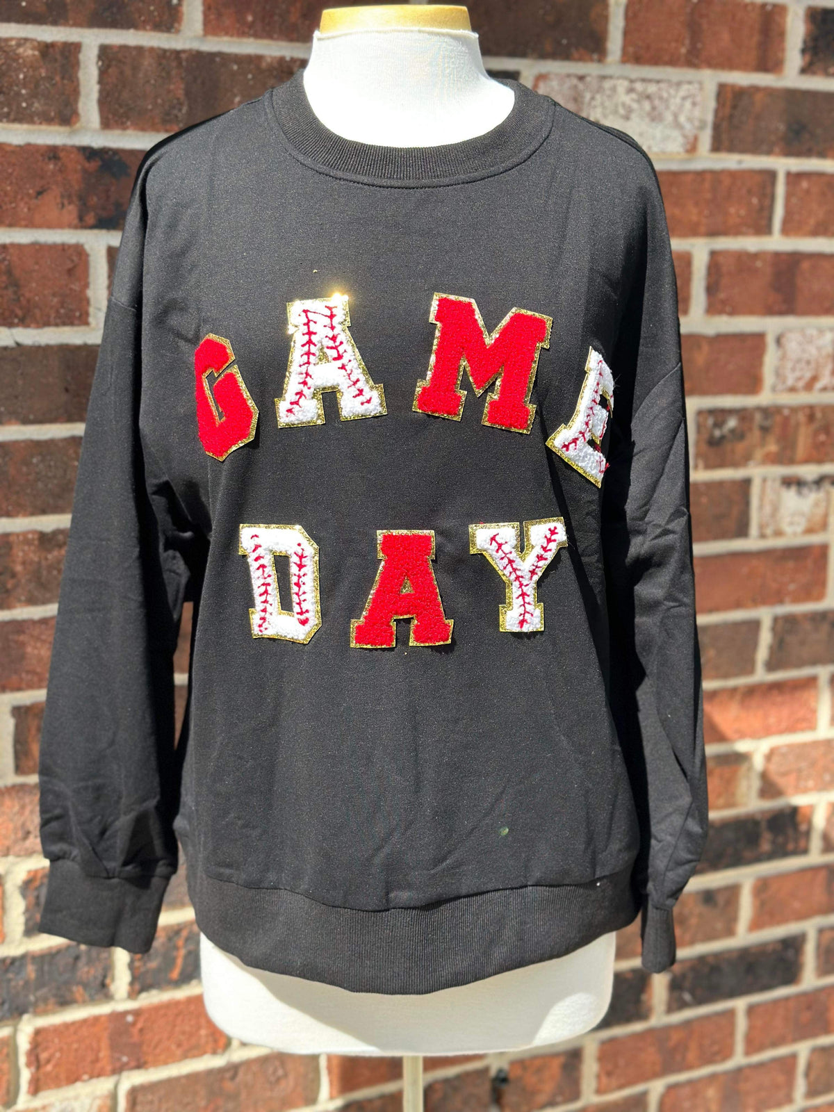 Inform when this item available Baseball Chenille Gameday Patches Pullover - BLACK