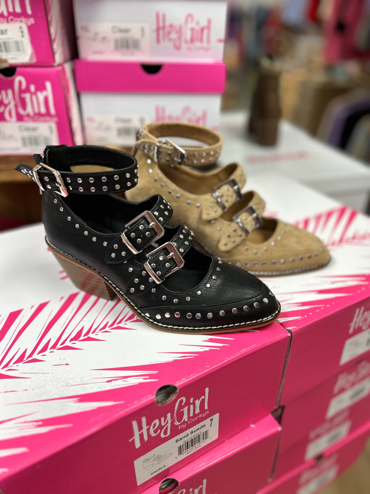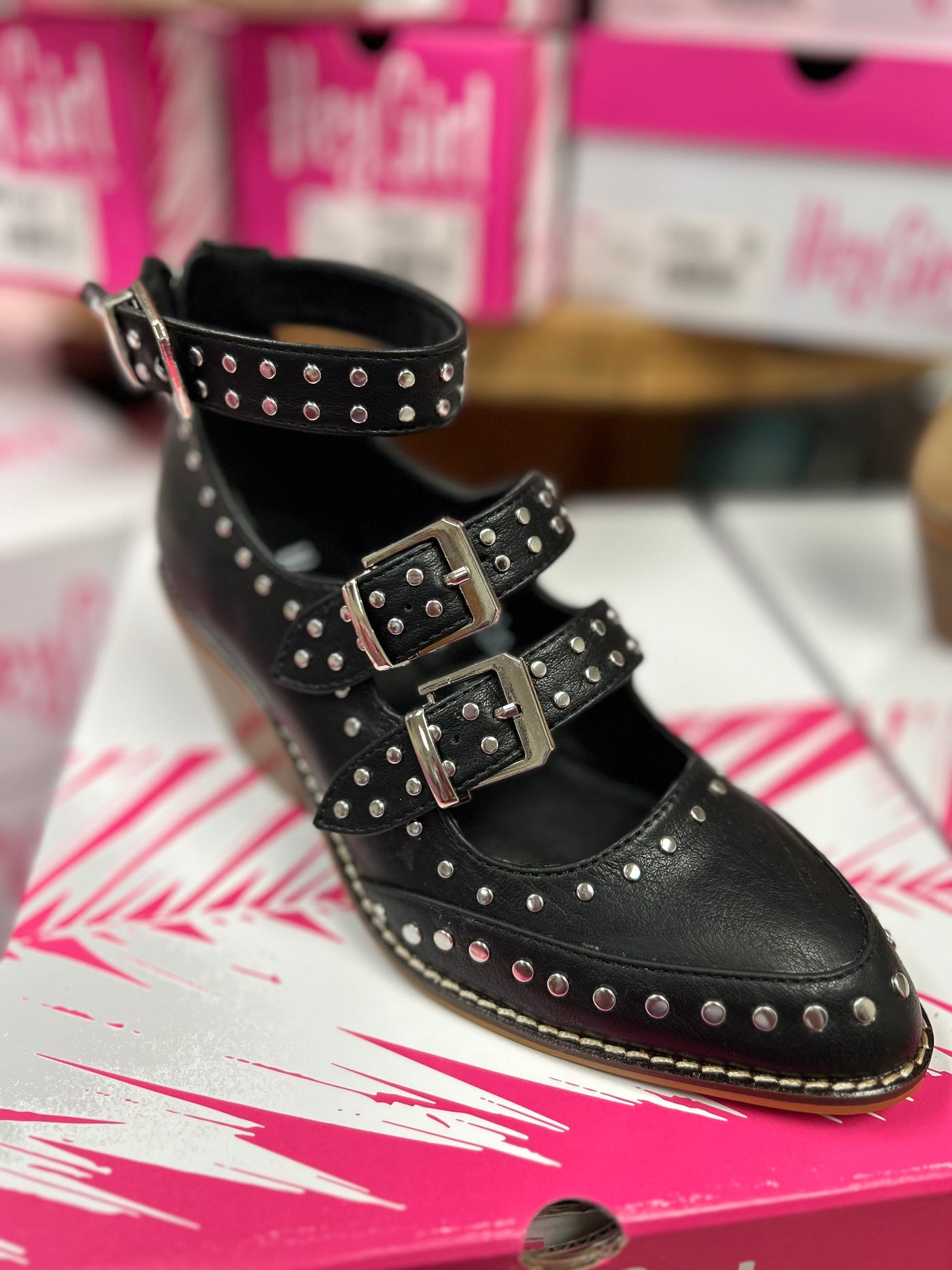 Slip into CORKYS' Cackle Triple Strap Mary Janes and buckle up for style and comfort all year round! With faux leather, studded accents, easy-access back zipper, and adjustable buckles for high instep or high arches, these booties will have you cackling with happiness! Plus, the 2.5-inch heel adds the perfect boost! Go ahead, buckle your way to fun! Fully functional buckle ensure perfect fit while zipper at heel makes for easy on/off!