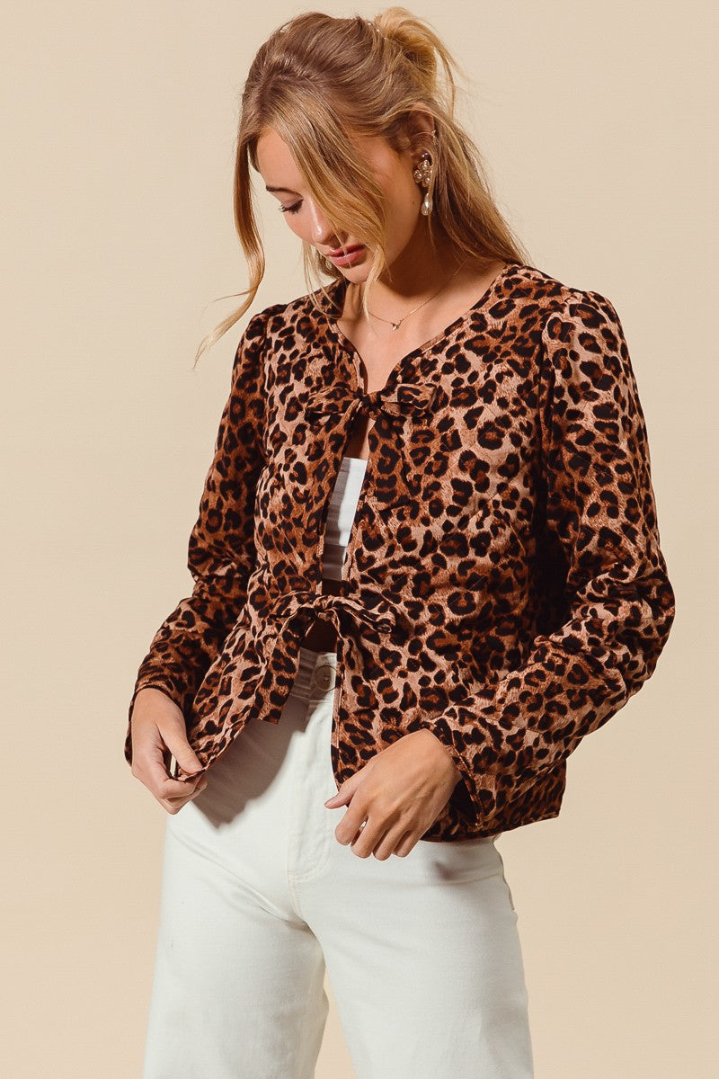Inform when this item available Elle- Quilted Leopard Bow Tie Front Jacket