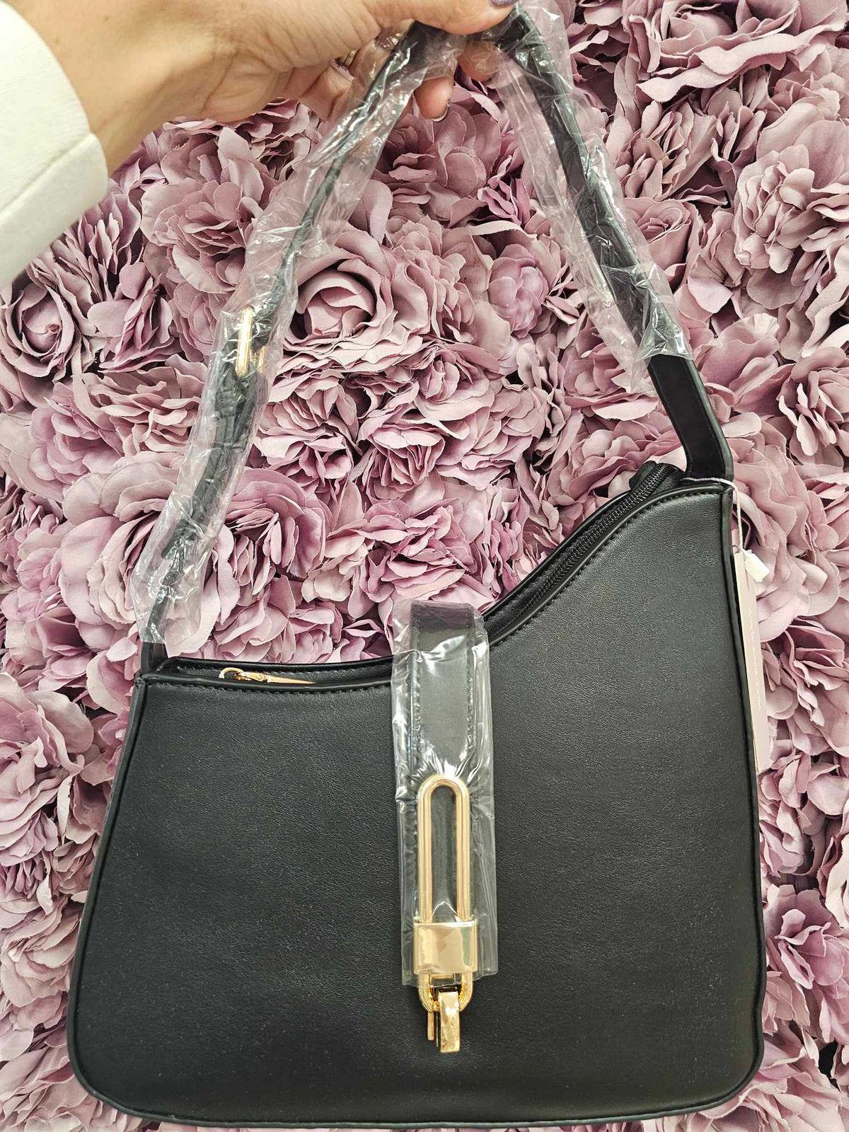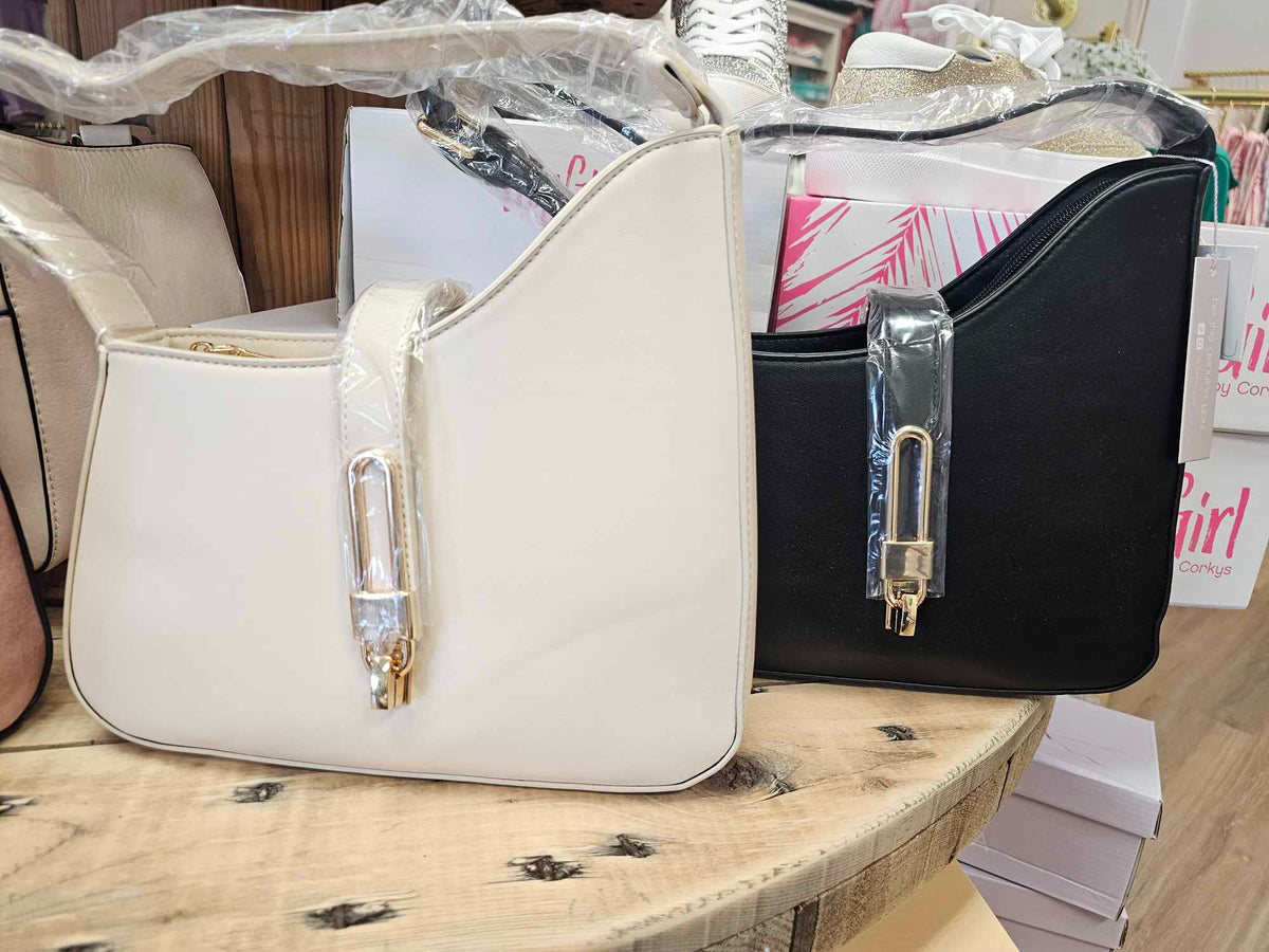 The sleek asymmetrical design of this handbag is the perfect touch of class. Inside compartments help keep your items organized. Also comes with a longer shoulder strap and dust bag!