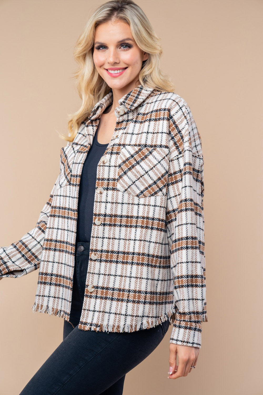 Long Sleeve Plaid Woven Shacket