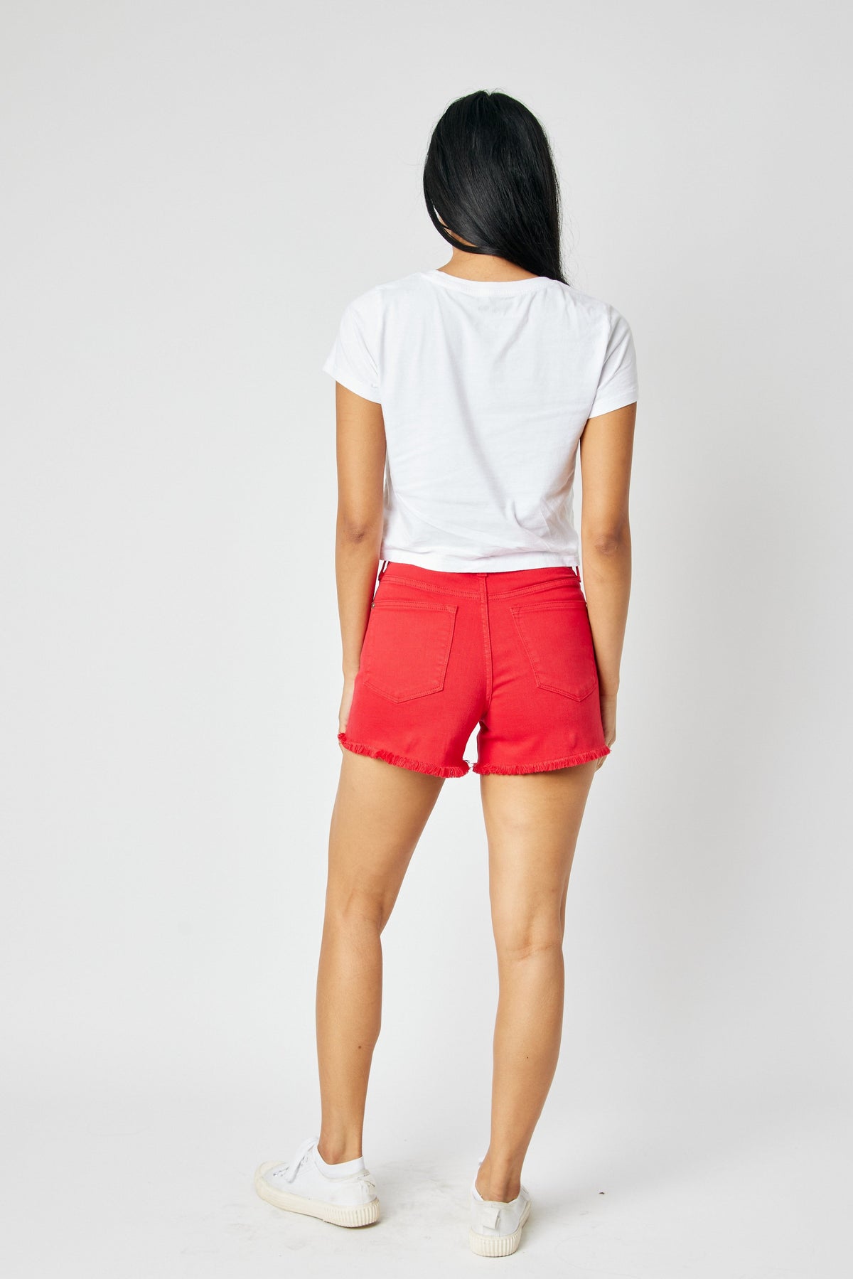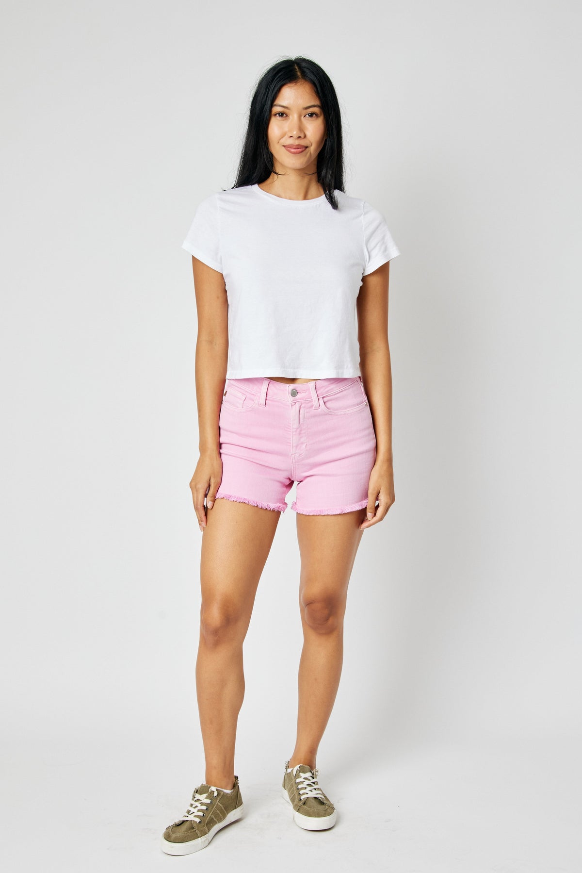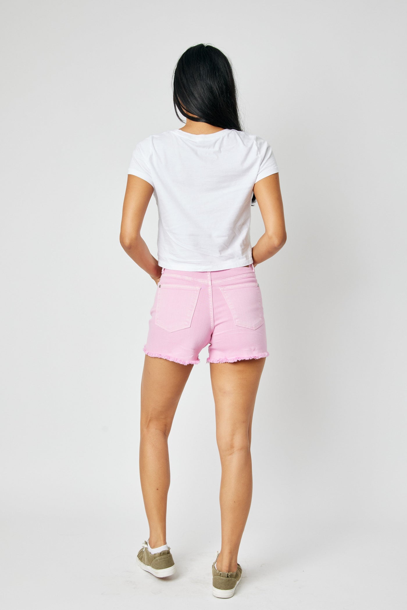 Judy Blue Mid Rise Garment Dyed Shorts - Pink / 1XL