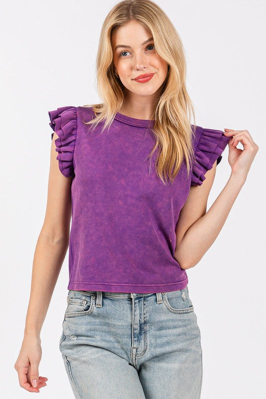 Mineral Washed Ruffle Sleeve Top