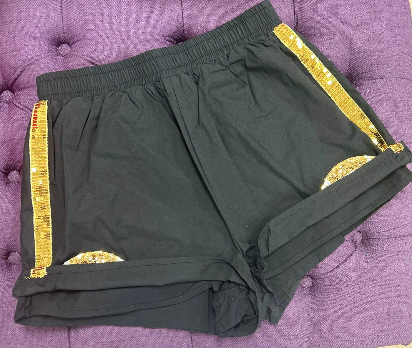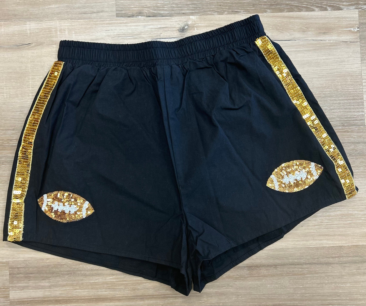 Elevate your game day outfit with our Onside Sequin Football Shorts. Made of chic and stylish cotton, these fully lined shorts feature trendy and eye-catching sequin footballs and side trimming. Command the sidelines in comfort with the easy-to-wear elastic waistband. Perfect for showing off your team spirit.