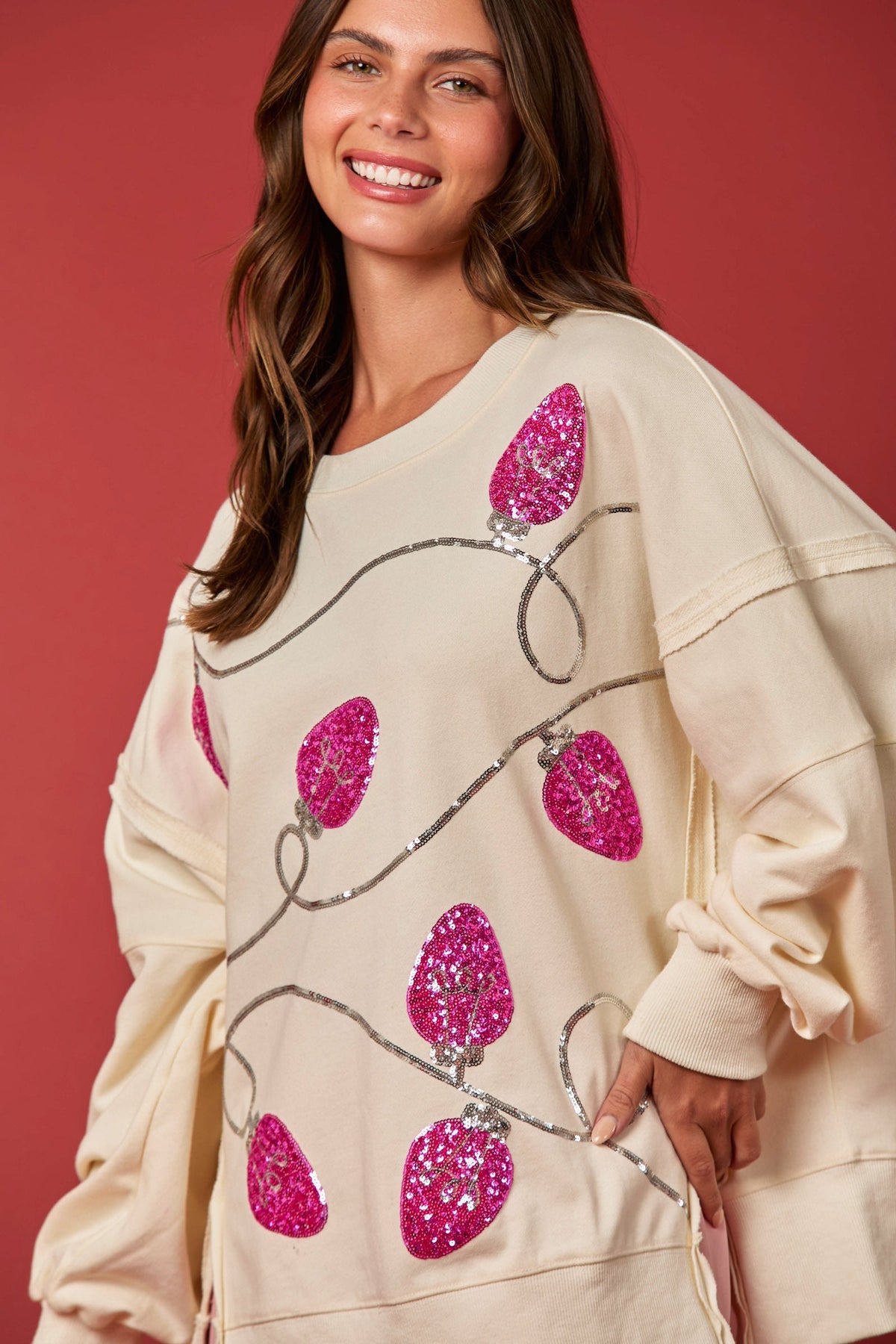 Inform when this item available Pink Christmas Lights Open Seam Sweatshirt