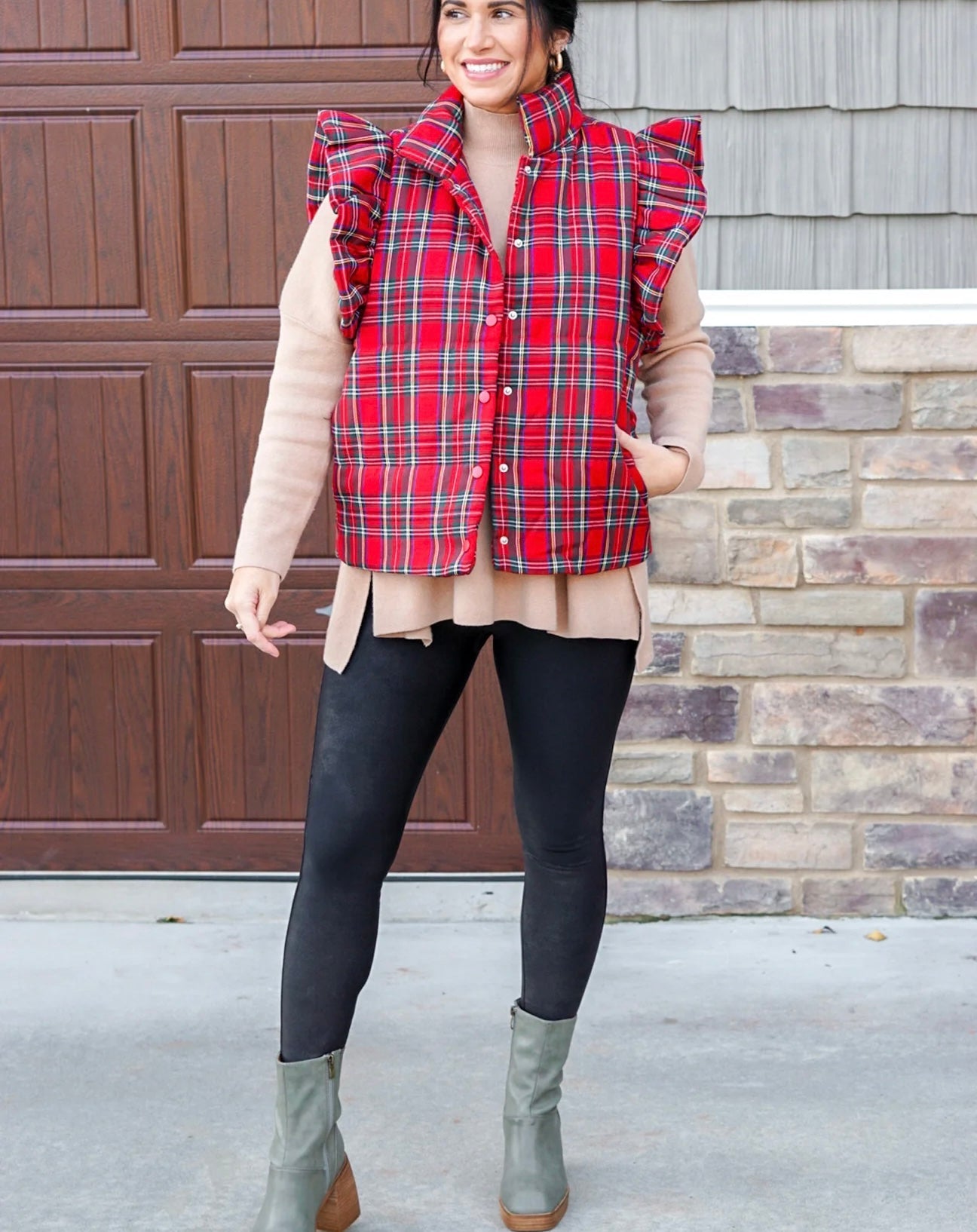 Plaid Perfection Christmas Ruffled Puffer Vest