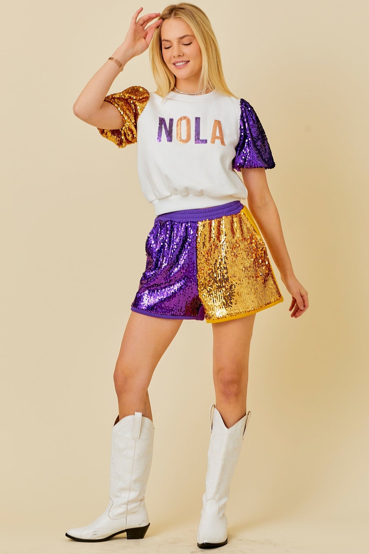 NOLA Letter Patch Sequin Sleeve Top - Small