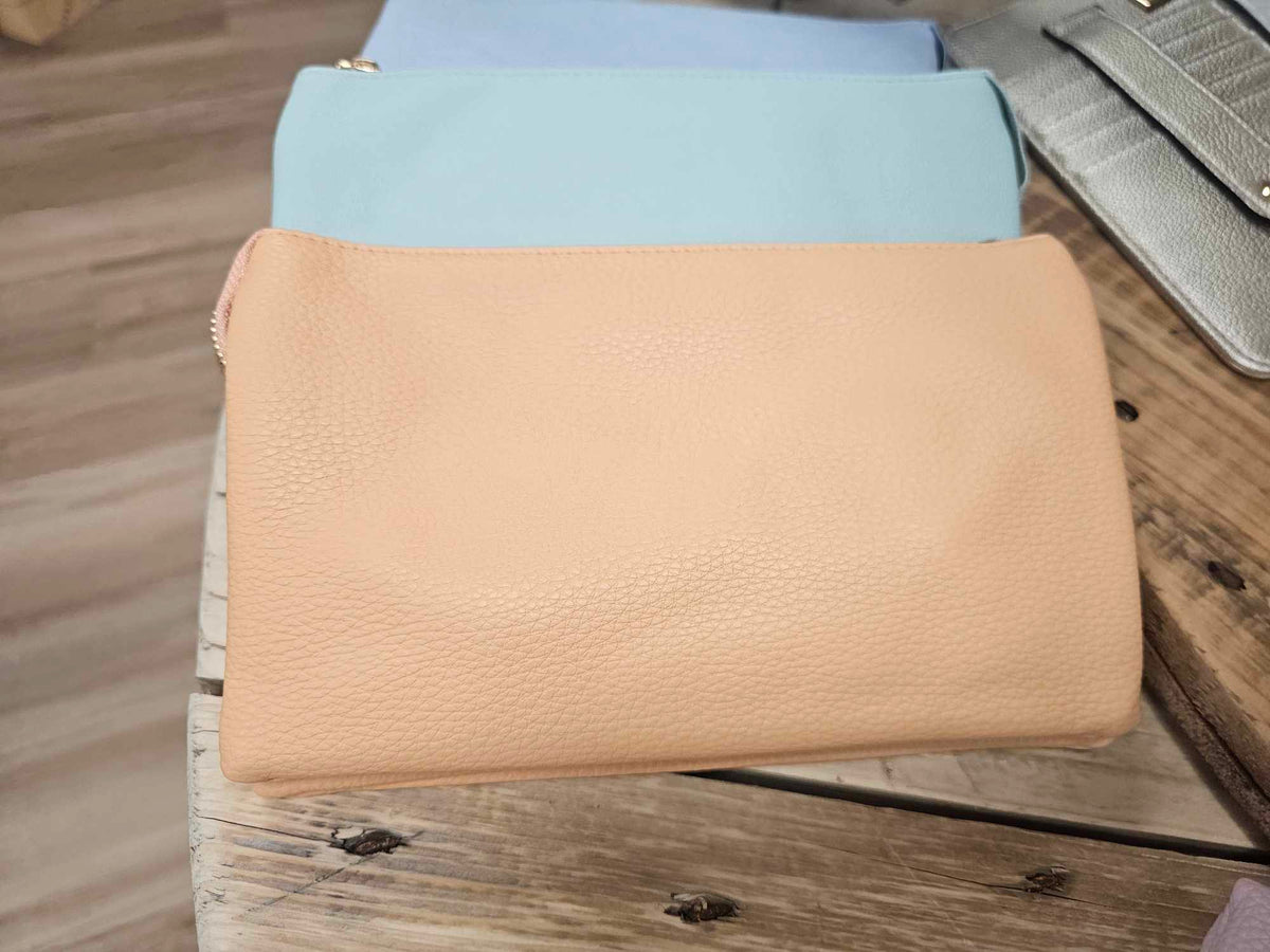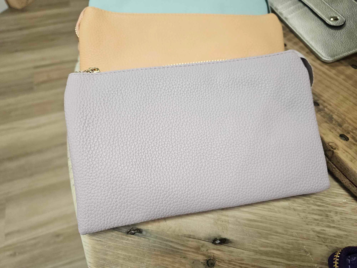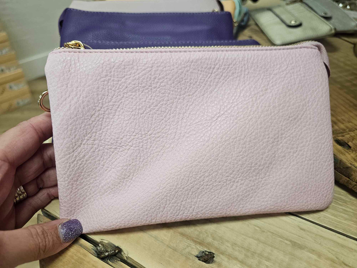 This Riley wrislet/crossbody is designed to be slim and convenient, with 3 compartments for easy organization. Use it on-the-go as a crossbody or wristlet for versatility. Perfect for those who value functionality and style in one.