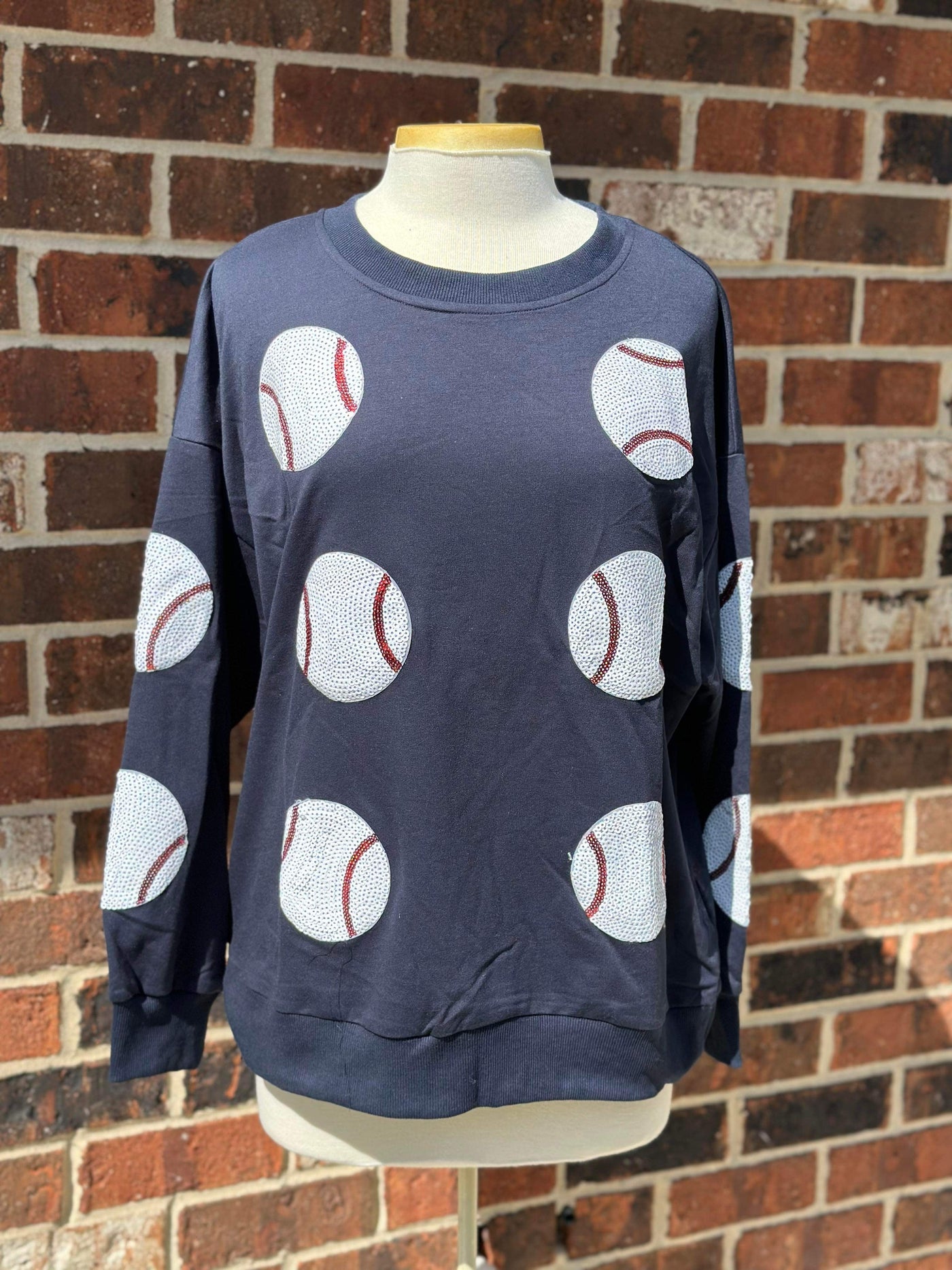 Sequin Baseball Patch French Terry Pullover - NAVY