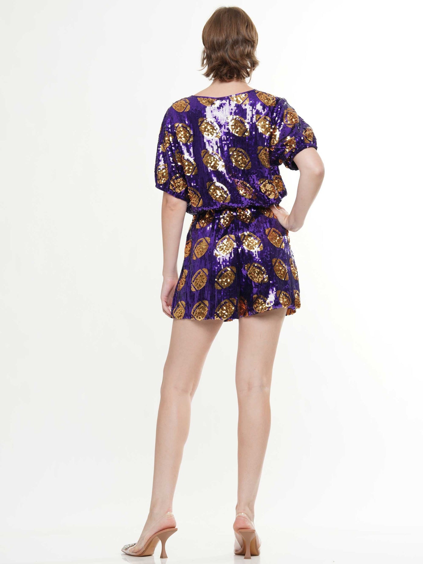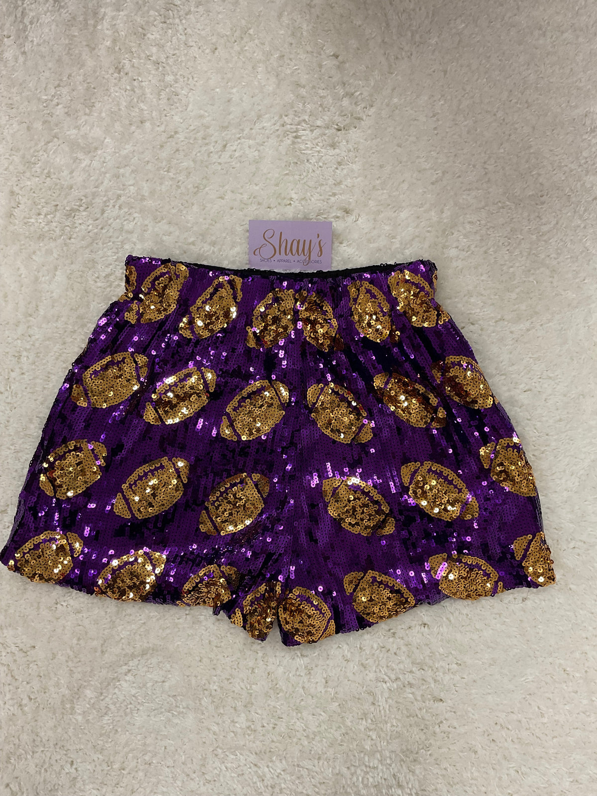 Elevate your game day wardrobe with our Sequin Football Shorts! Featuring a stunning sequin football design, these shorts are perfect for showing off your team spirit. Elastic waistband and Lined for all-day comfort and wearability. Grab the matching bubble top to complete your game day outfit!