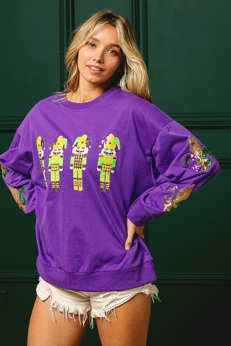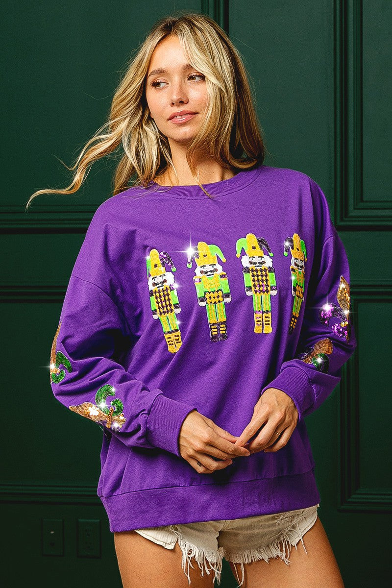 Nutcracker SEQUIN MARDI GRAS PATCHES AND EMBROIDERY PULLOVER