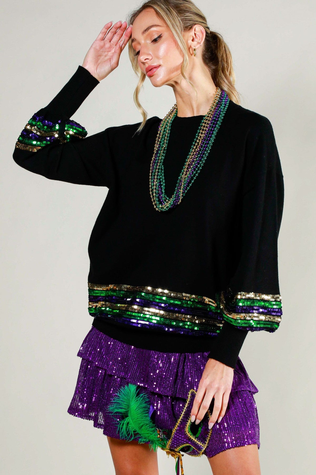 SEQUIN TRIM DETAIL MARDI GRAS SWEATER TOP