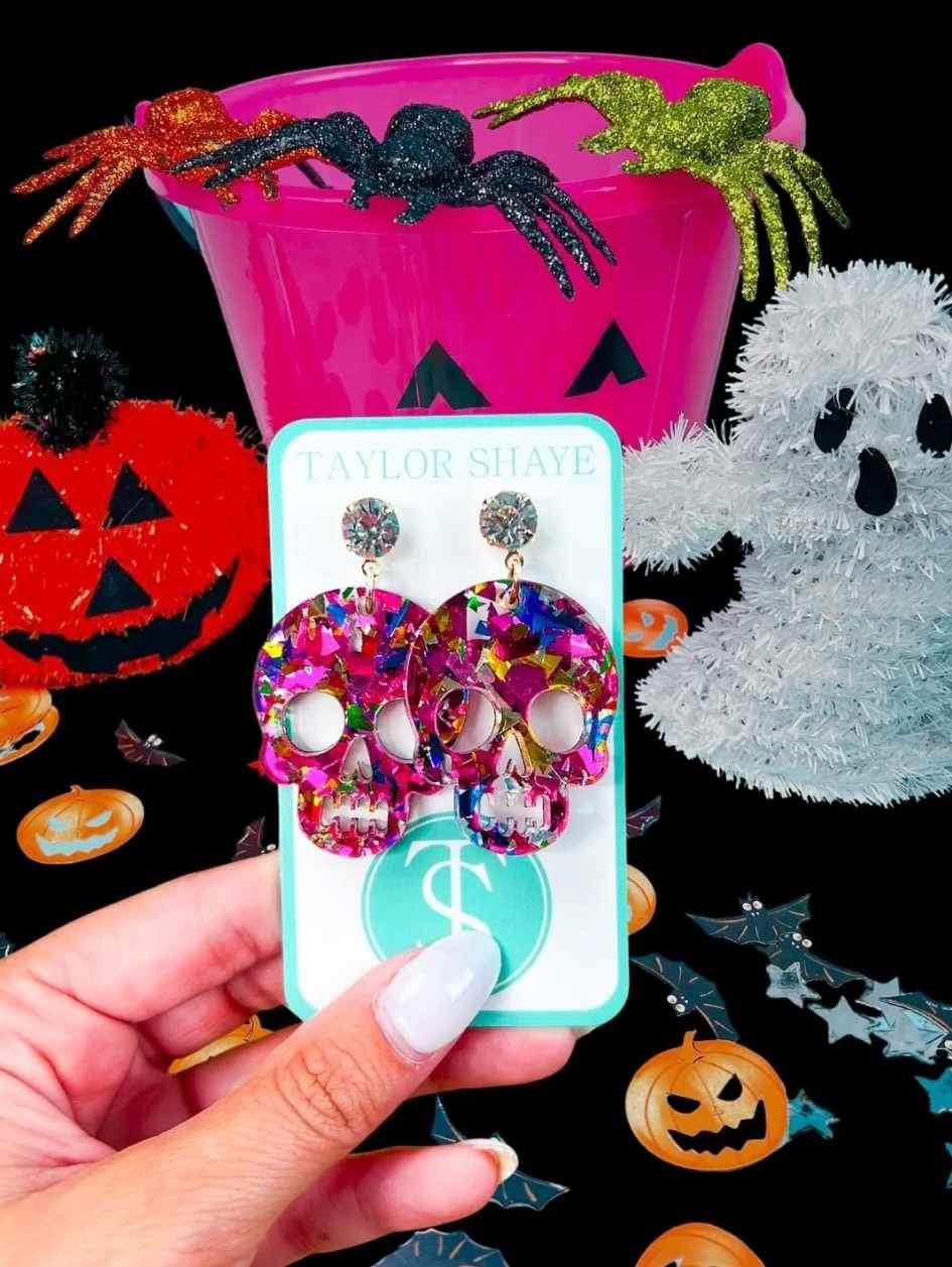 Taylor Shaye Multi-Dimensional Skull Earrings - Pink Multi