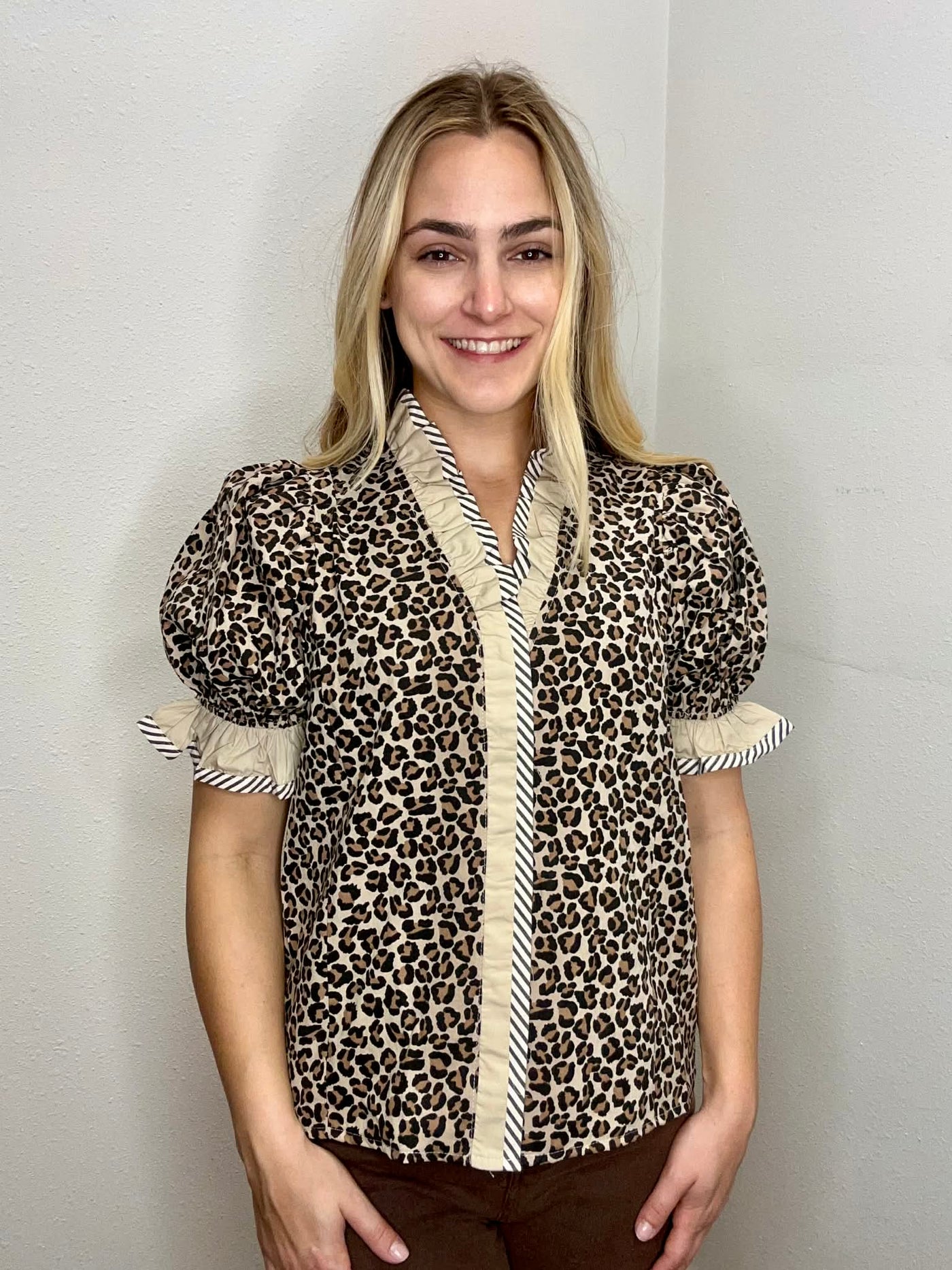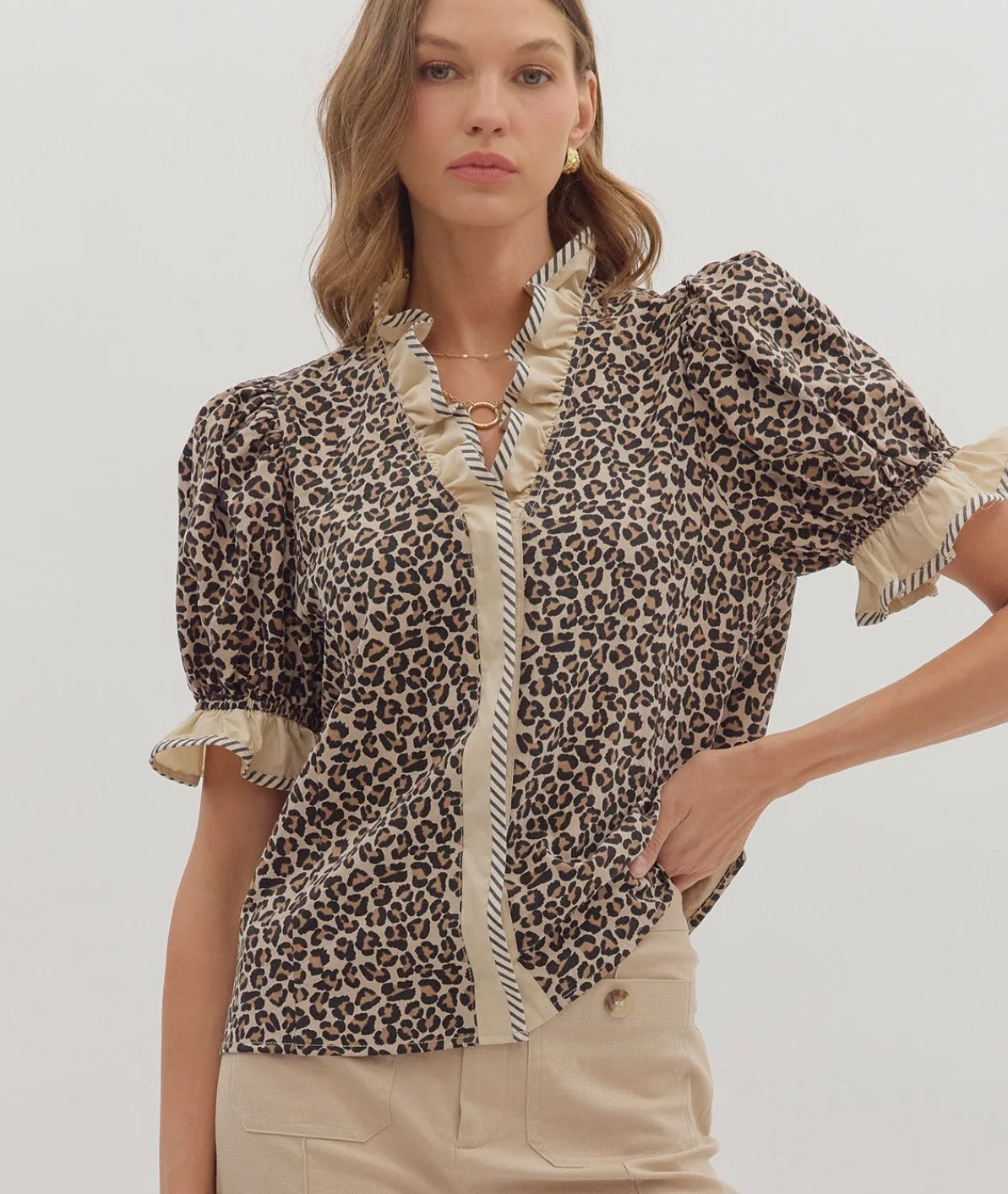 Introducing the Nova Top - the perfect addition to your wardrobe. The elegant and versatile top features on-trend animal print, allowing you to effortlessly dress up or down for any occasion. Pair it with any color to achieve a stylish and classy look.