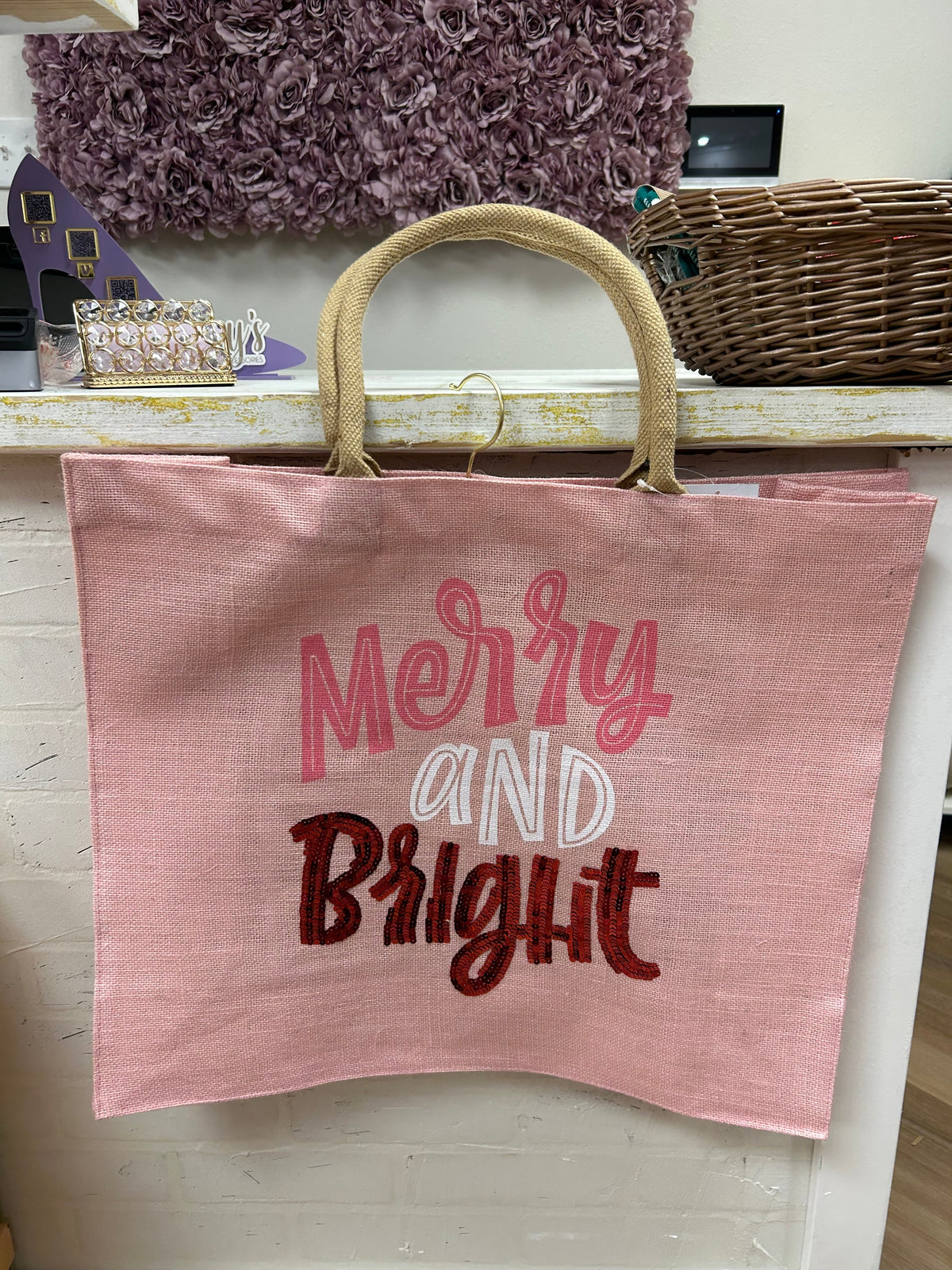 Merry and Bright Carryall Tote Light Pink/White/Red