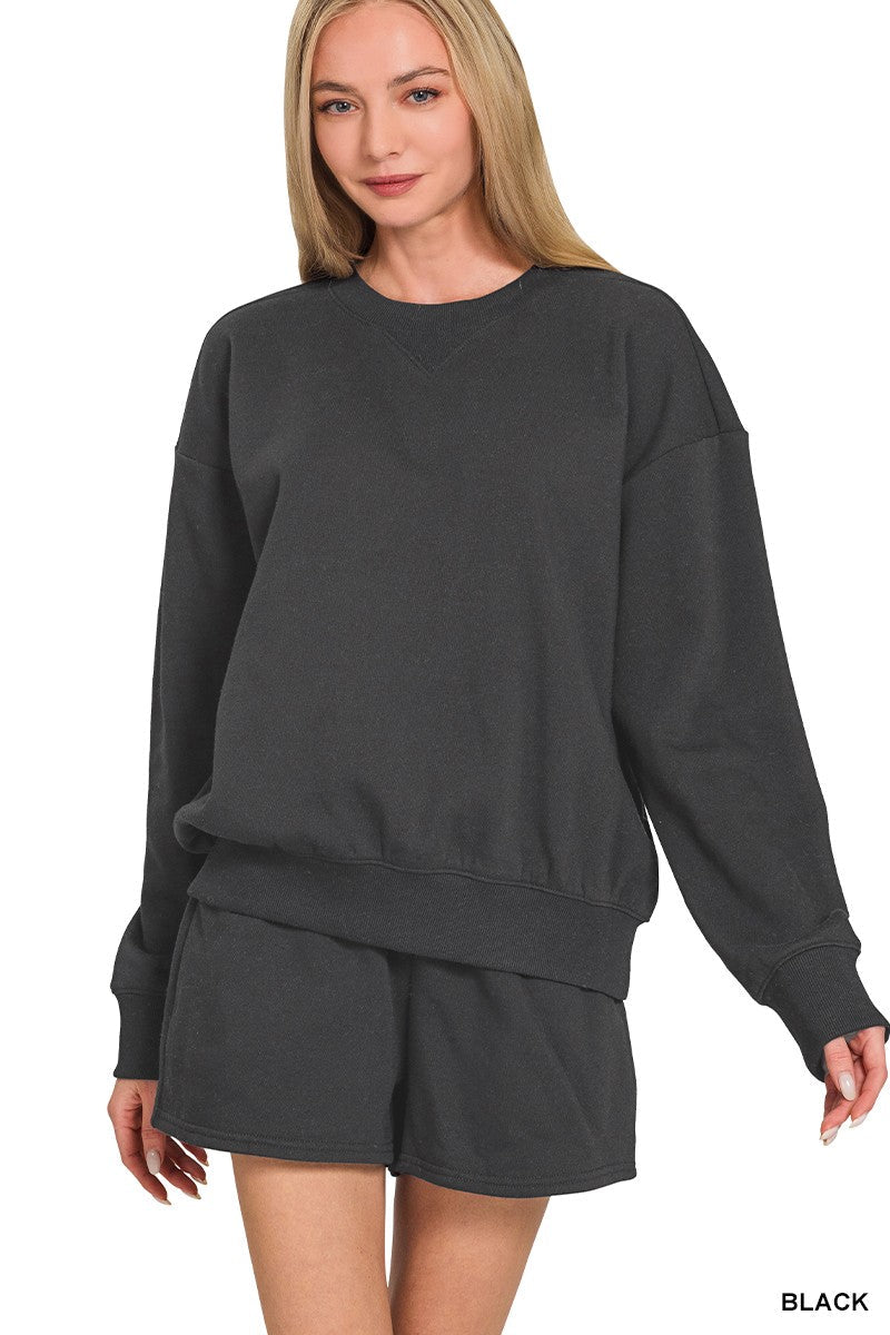 Trending Times- Fleece Long Sleeve Sweatshirt & Shorts Set