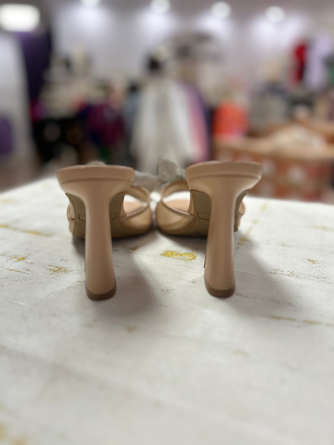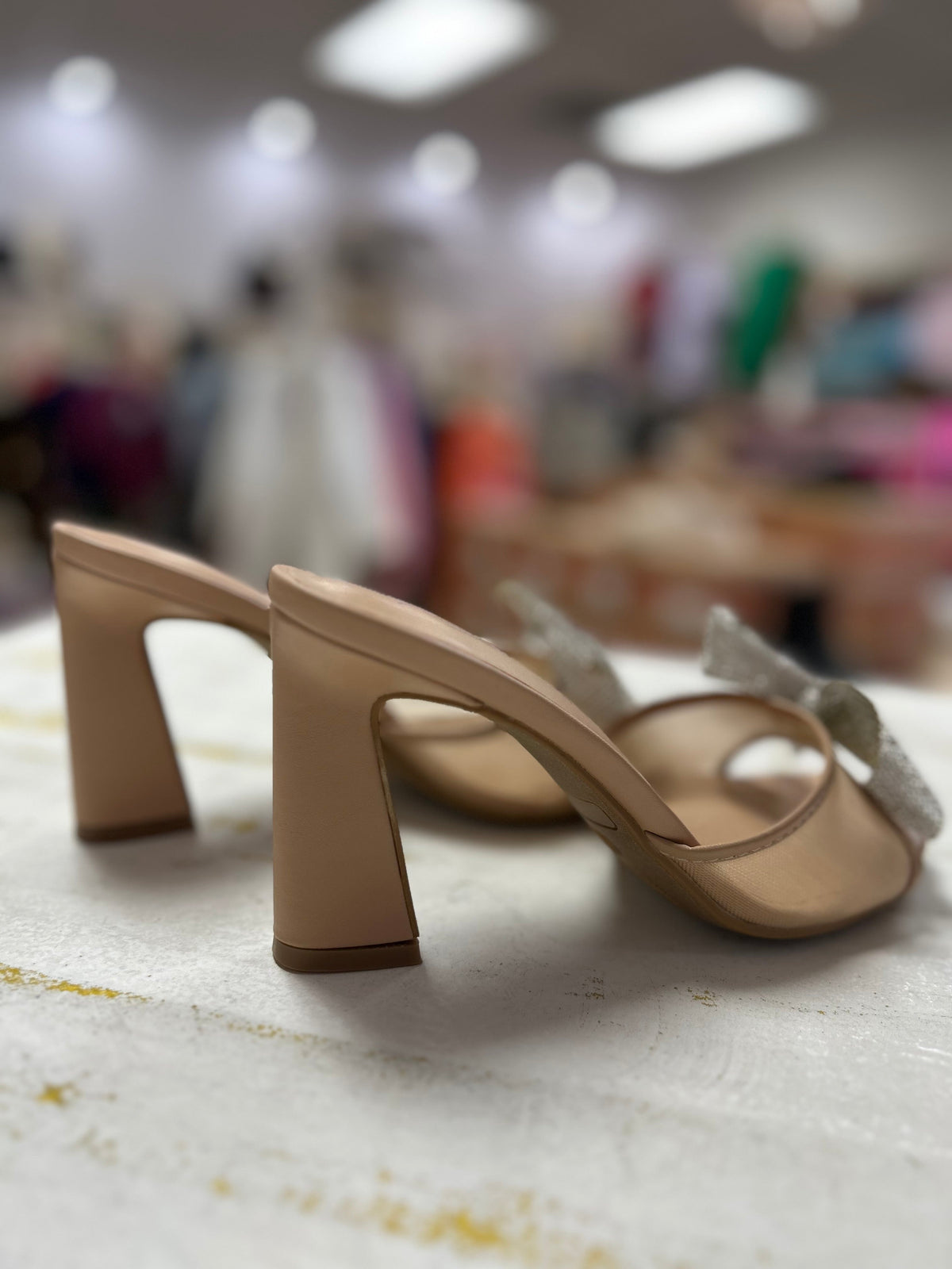 Elevate your style with the Valley Heel. This must-have heel adds a touch of sparkle to any outfit with its chic rhinestone encrusted bow detail. The slip-on style elongates legs, making it perfect for any occasion. Available in nude and black, it's versatile and sure to turn heads year round.