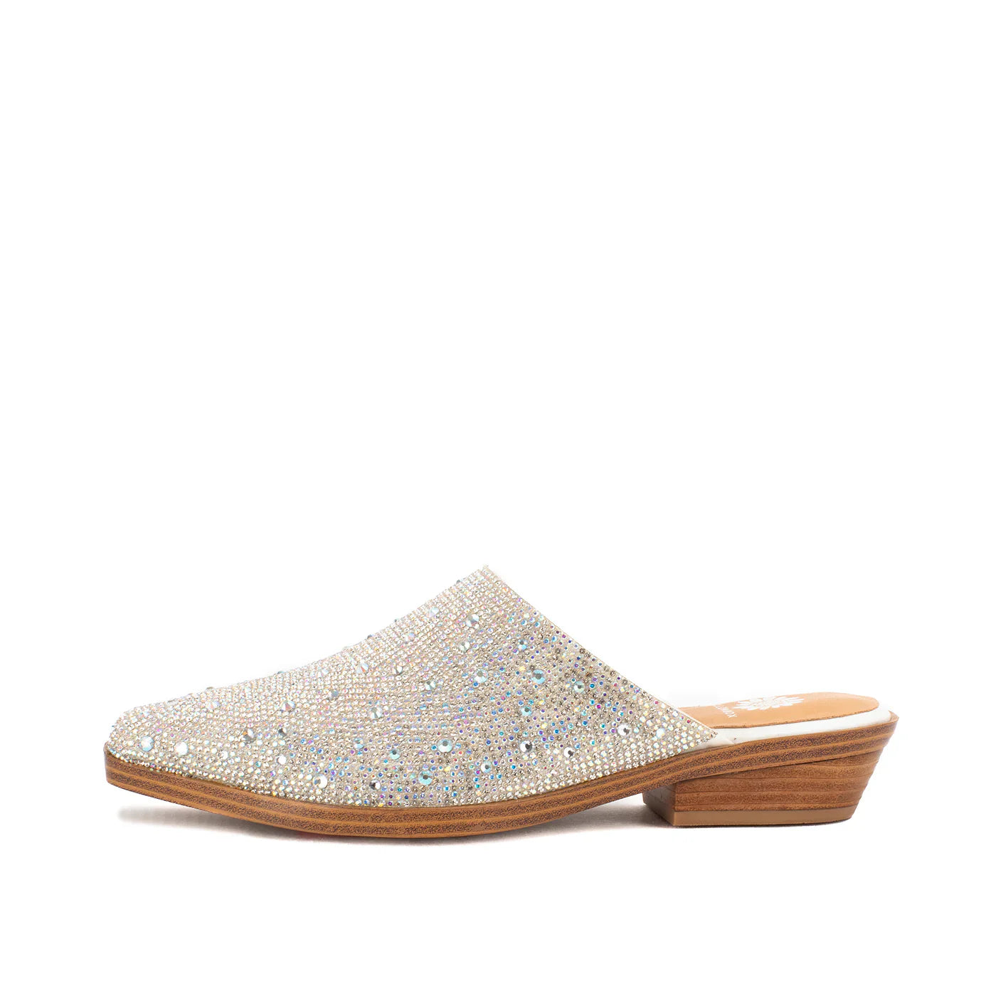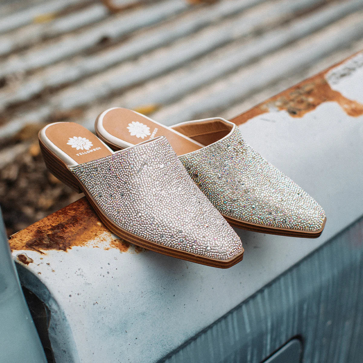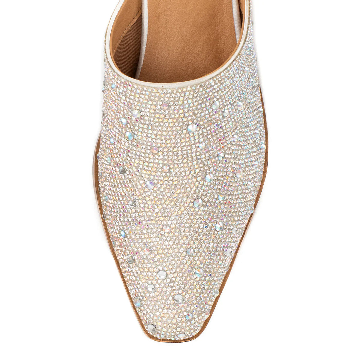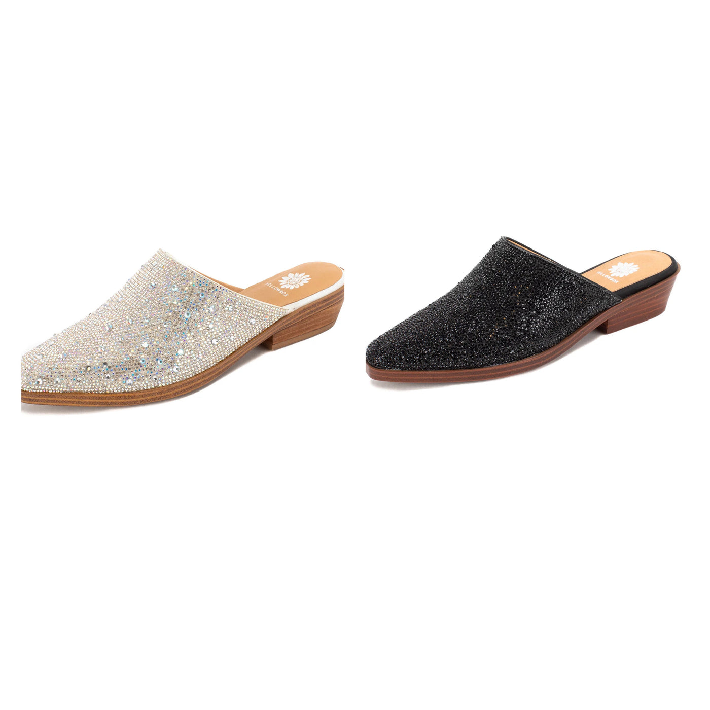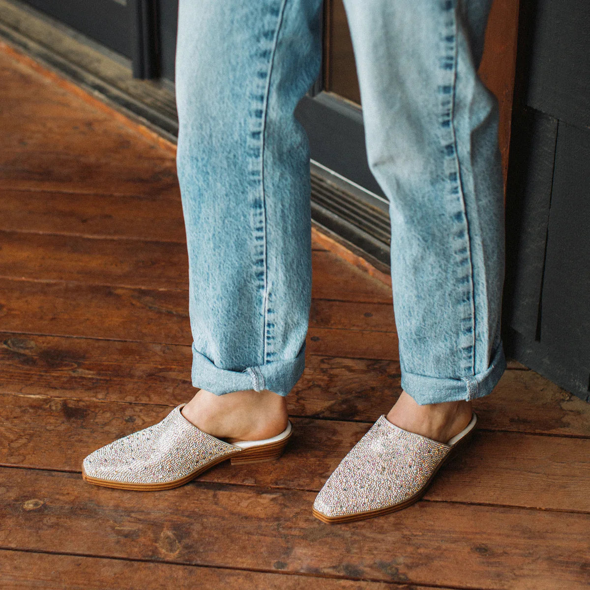 Capture everyone's attention everywhere you go in our striking WANNY mules. Embellished with dazzling rhinestones, these comfortable and walkable low-heeled mules are the perfect choice for adding an instant touch of glam to any ensemble.