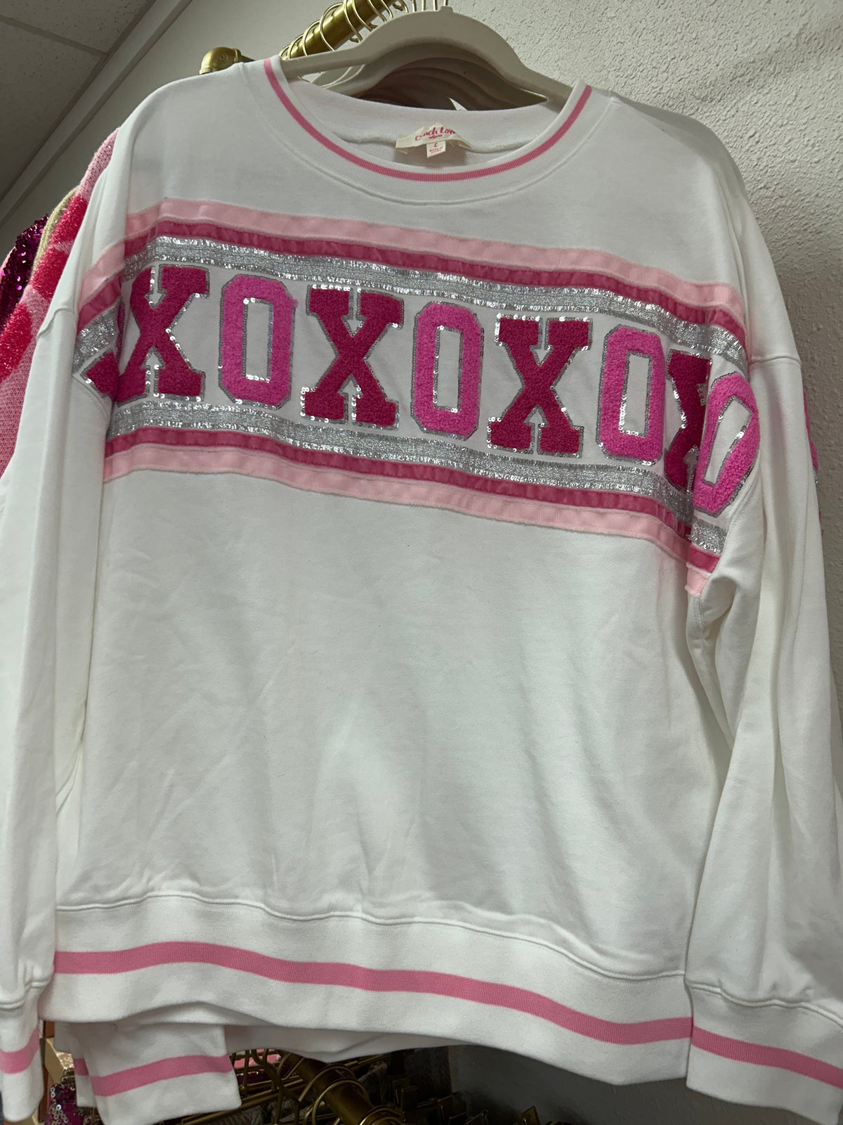 The XOXOXO Chenille Patch Top combines comfort and style with its slightly oversized, flowy fit. Show off your love of love and stand out in this versatile top. Dress it up or down for any occasion, making it the perfect addition to your wardrobe not just for Valentine's Day, but all year round.